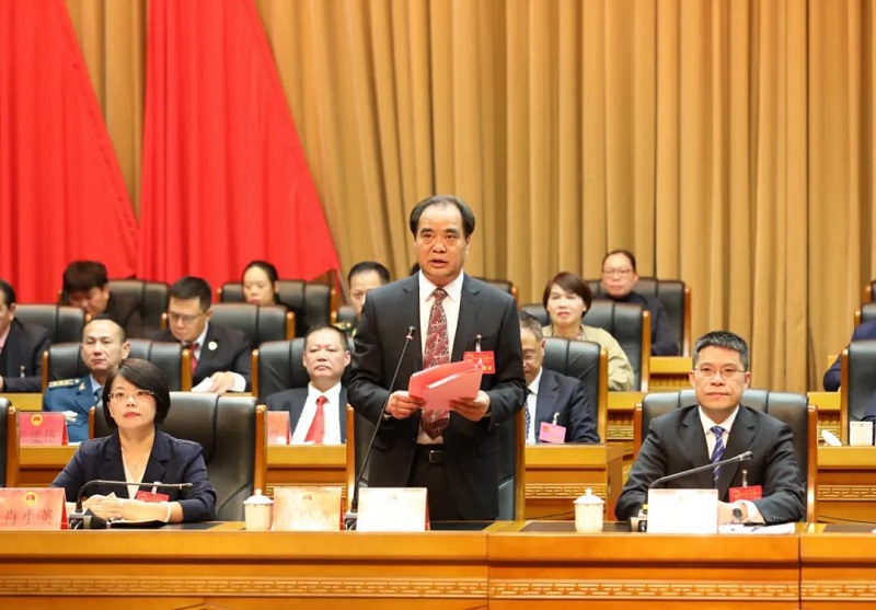上午10点半,县十八届人大三次会议举行第四次全体会议。本次大会的执行主席是陈金友、苏冰、许以章、林文峰、肖小英、张庆宗、侯一晞、罗智林、陈振灯、邱国华、吴京生、郑琳桂、王敏、鲍日样、檀宪、叶祖玲、汤炎灯。会议由县人大常委会主任许以章主持。