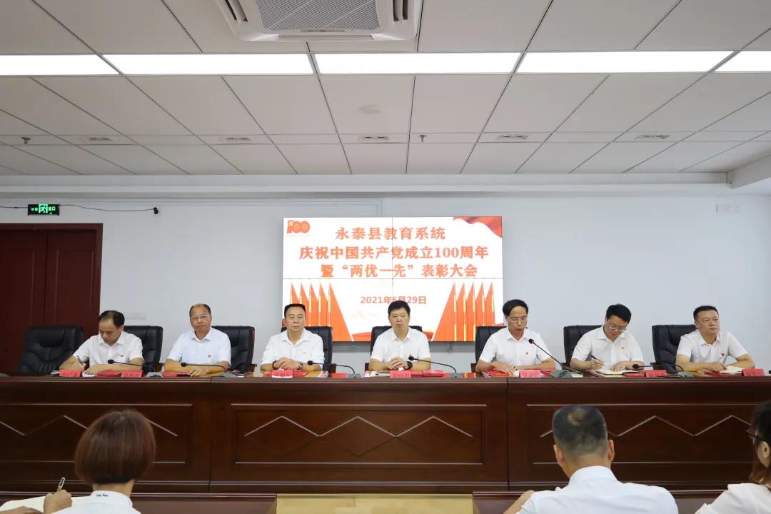 6月29日上午,永泰县教育系统召开庆祝中国共产党成立100周年暨“两优一先”表彰大会。县教育系统党委书记、教育局党组书记、局长黄绍川出席会议并讲话,县教育系统党委副书记、教育局党组成员、副局长张训莺主持会议。