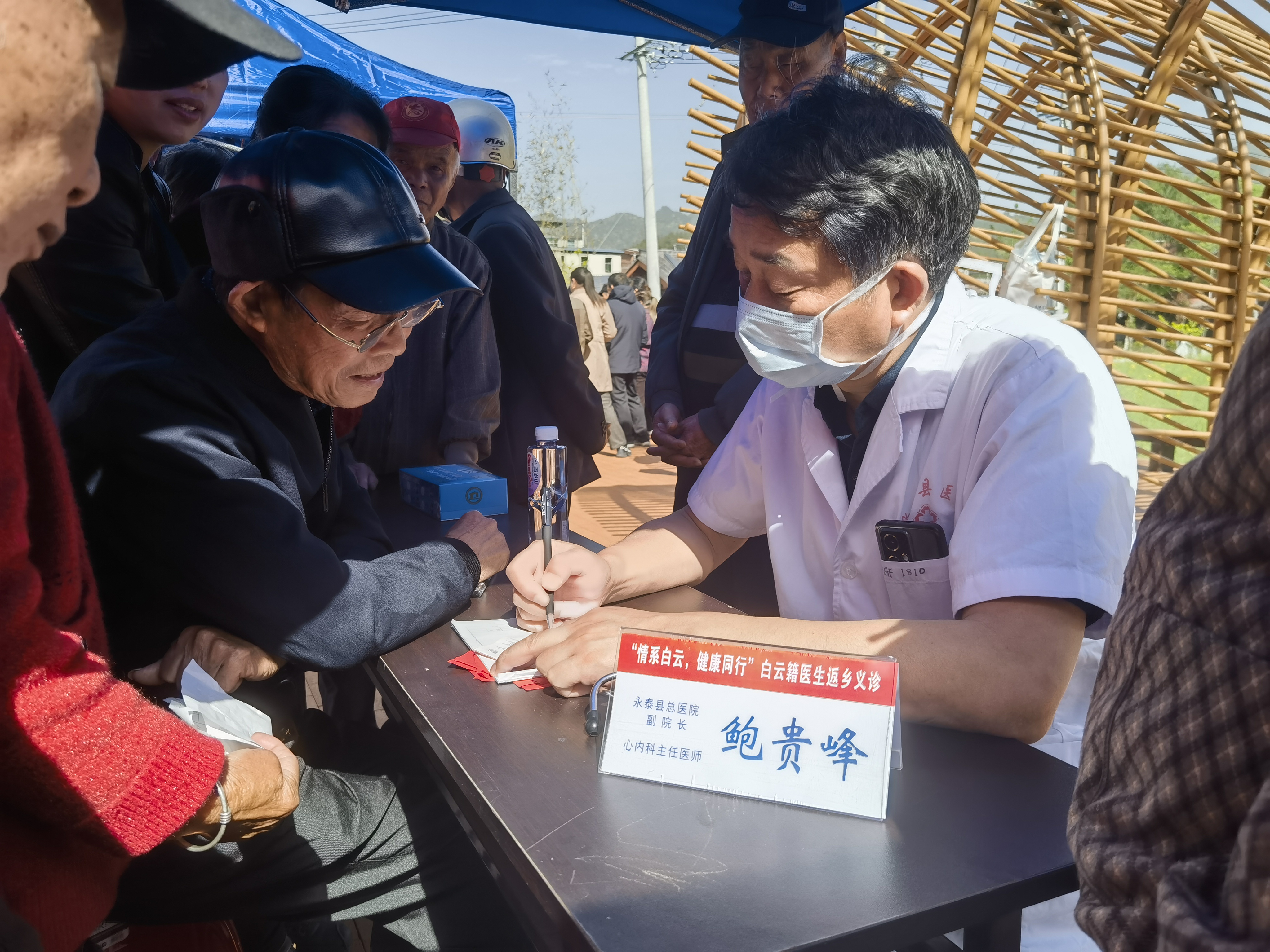 义诊团队由来自福建医科大学附属第一医院、永泰县总医院的白云籍医生和护士组成,涵盖神经内科、儿科、普外科、妇产科、肿瘤防治咨询等专科领域,为群众提供免费血压血糖检测、疾病问诊及慢性病管理指导等服务。此外,医务人员还向群众免费发放常见病防治药物和肿瘤防治、脑卒中保健等主题宣传资料,鼓励他们积极参与健康管理,做到早发现、早诊断、早治疗。活动当天,义诊团队累计接诊群众500余人次,开展血压血糖检测等免费项目200余例。