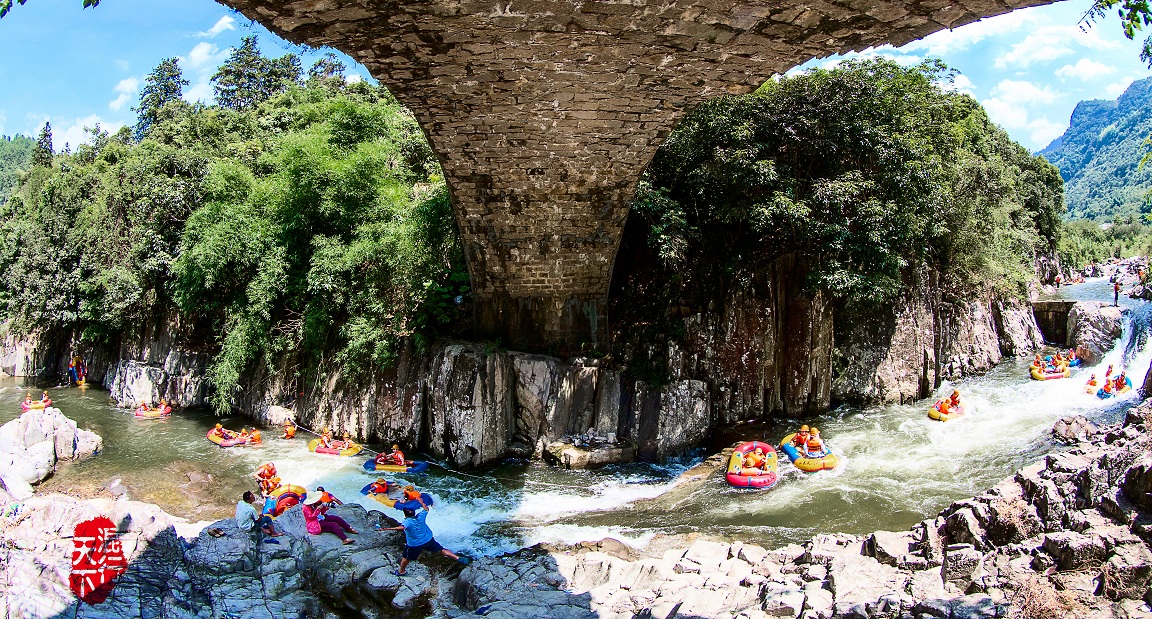 最精彩的还是天门山的漂流,近3公里的河段,落差达60米,一路陡坎跌水,甚是惊险。天门山漂流有着“矿泉溪漂流”的美誉,溪水清澈见底,漂流河段全程3公里多,漂流全程时间约2小时左右。当游客乘坐着皮艇顺流而漂时不仅可以感受到清凉之夏,还可观赏两岸秀丽幽奇的风光,整条漂流水道弯曲起伏,有4米多高的垂直瀑布,长50米的斜坡原始石滩。