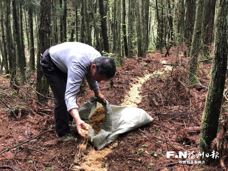 走进永泰县岭路乡长坑村,茂密的杉树林下,十余位村民正忙着种植竹荪,他们有的开沟、有的摆放菌棒、有的覆土……正是一派繁忙的春种景象。