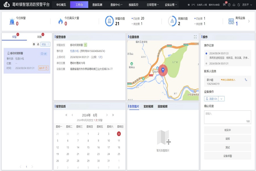 8月2日16时18分,永泰县葛岭镇智慧消防预警平台发出烟雾报警信息,位于葛岭镇江山大名城一经营店铺内烟雾浓度超标。8月4日凌晨00时31分,葛岭镇智慧消防预警平台发出移动侦测报警信息,位于葛岭镇江山大名城一经营店铺内有人员停留。