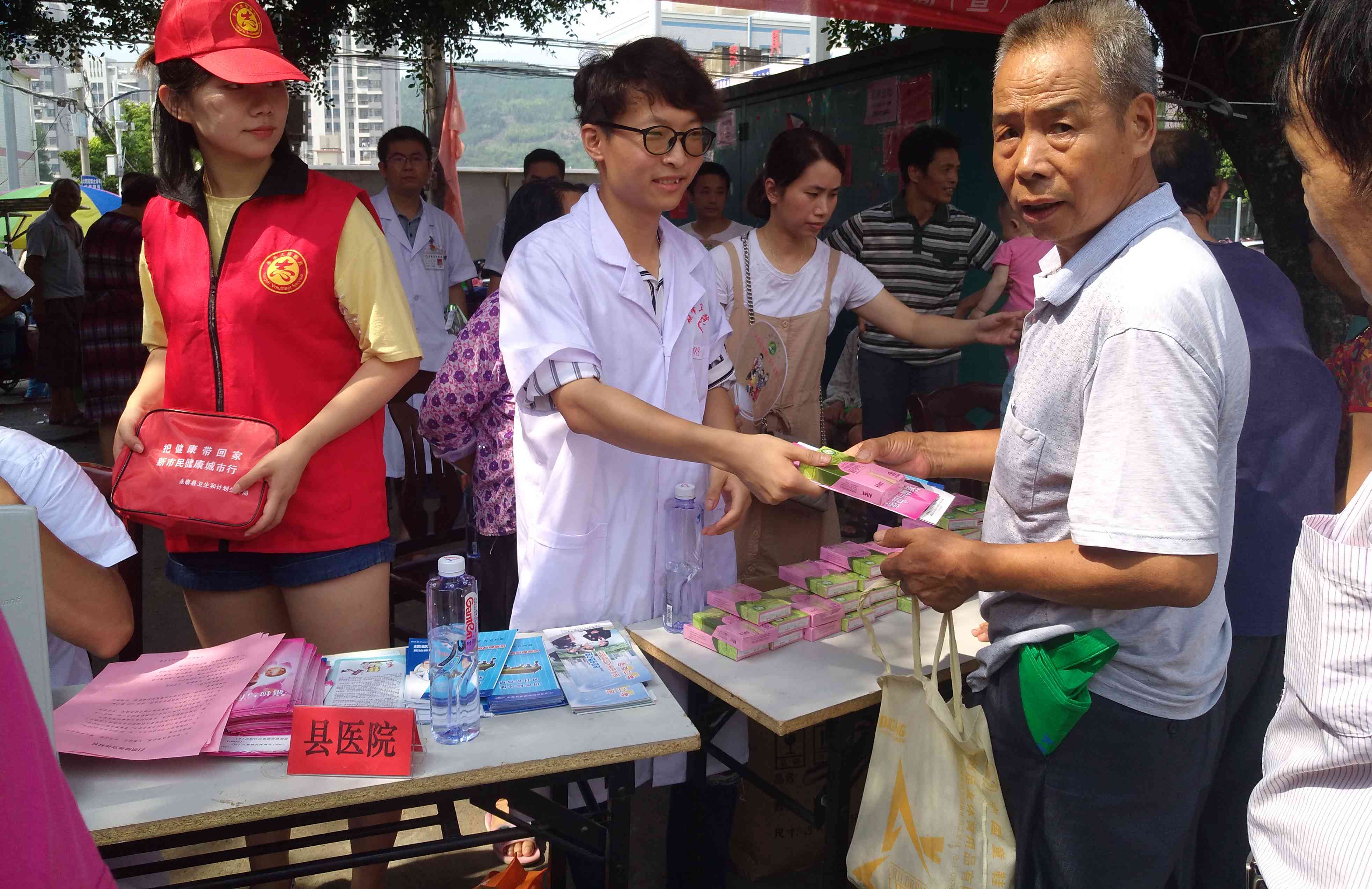 活动现场,志愿者向群众发放宣传册页和健康支持工具包、避孕药具等,为他们讲解卫生计生政策,弘扬了科学、文明的婚育新风尚。县医院、县中医院的医护人员分别为群众、留守儿童提供免费测量血压、血糖、健康咨询和义诊服务,倡导了健康生活新观念。