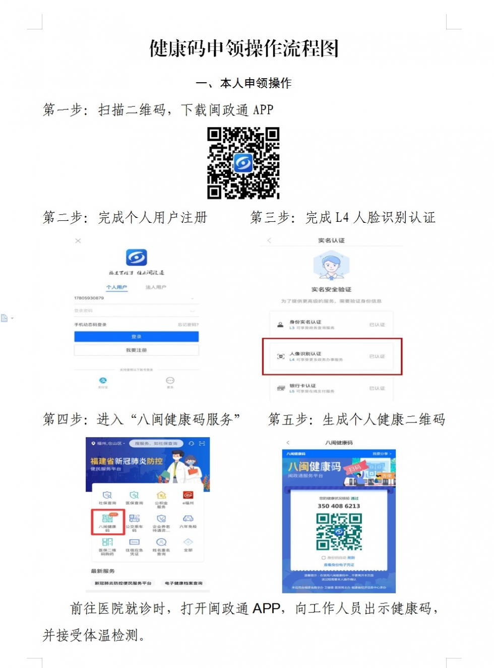 请您在入院就诊时出示您和家属的健康码。