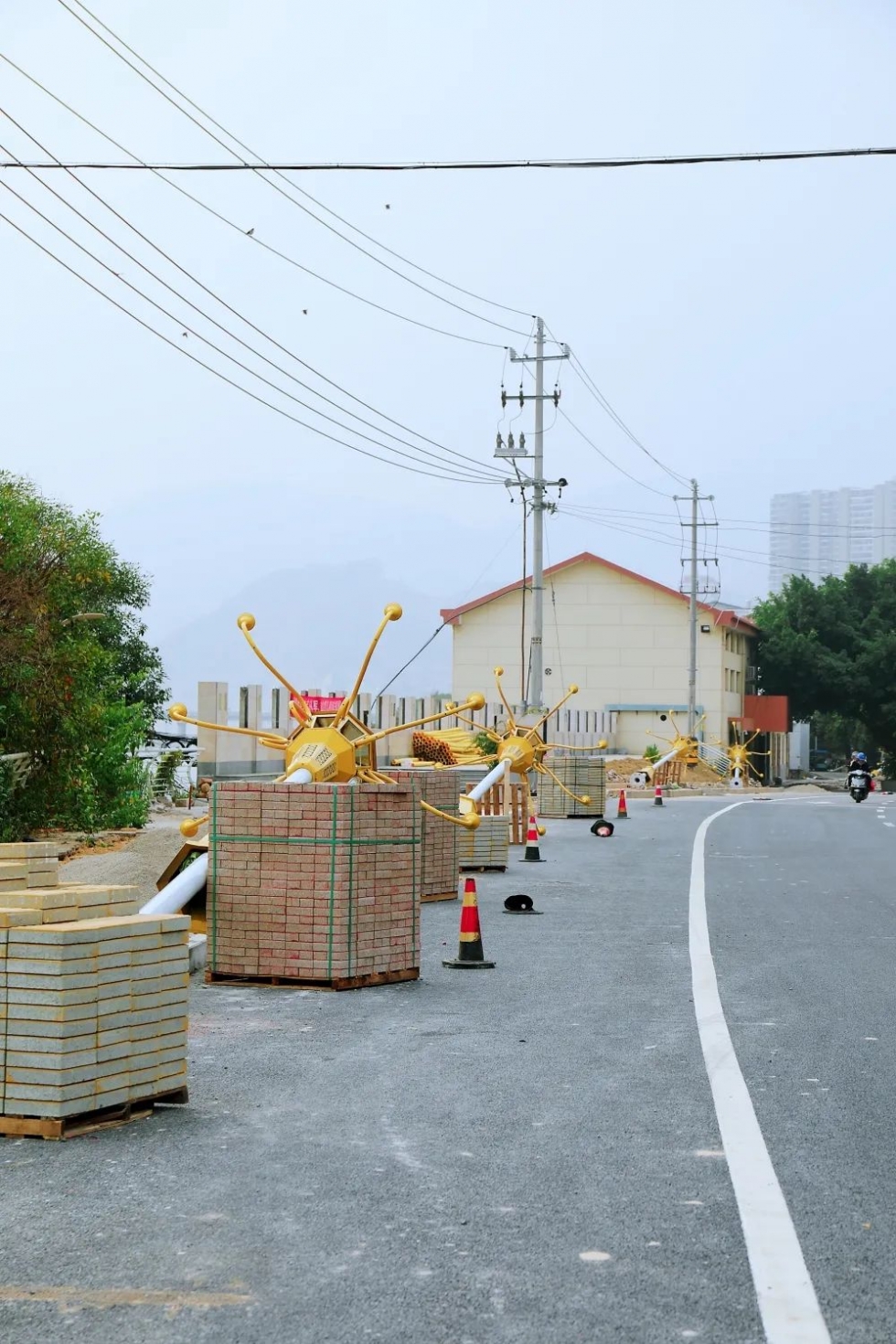 北江滨路提升改造项目负责人张思宏说:“目前已经完成440米的沥青铺设,还完成了配套的雨水管、污水管、电力管以及自来水管等地下管网布设,现在施工的是人行步道。”