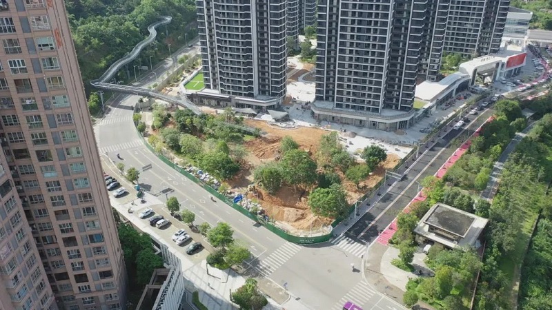 润邦置业营销副总经理 郑涛:“榕树公园周边景观正在全面改造建设中,目前,正在进行公园地面平整和管道预埋工作,后续将进行公园路面的石材铺贴和绿化种植,最后再安装地面构筑物。”